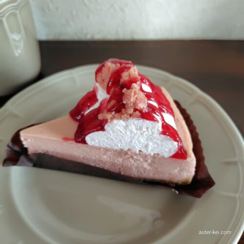甘酸っぱいストロベリーチーズケーキに、ストロベリーホイップとストロベリーソースをトッピングしたケーキ。
