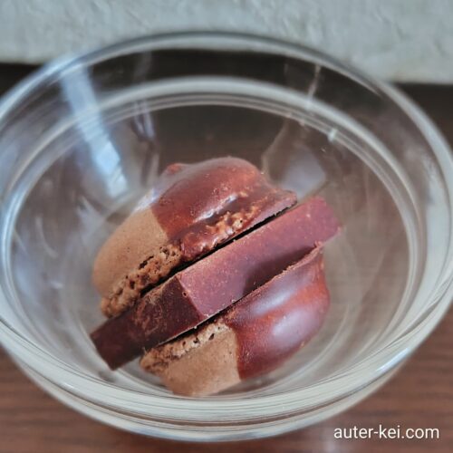 マカロンの上には「カカオハスク」と呼ばれるカカオ豆の皮が入っています。