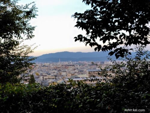 お寺の庭からは京都の街を眺めることができ、遠くには京都タワーも見えました。