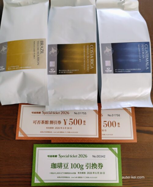豆の引換券と割引券の有効期限は今年の6月末までなので、