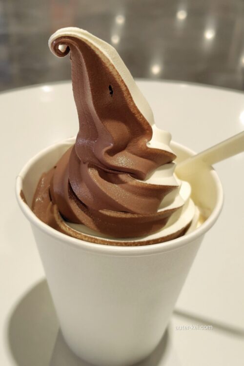 北海道ソフトクリームとチョコレートソフトのミックス。