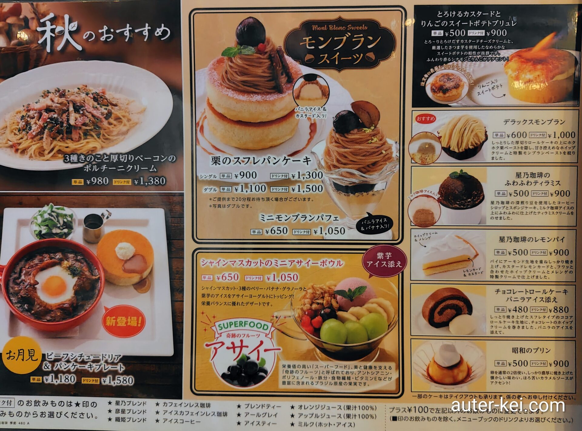 秋になっていろんなお店で秋の限定メニューが登場してますが、先日訪れた星乃珈琲店も例外ではありません。
