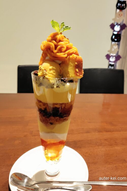 ラムレーズン入りのかぼちゃアイス、かぼちゃプリン、かぼちゃチーズケーキなど、いろいろなかぼちゃスイーツがぎっしり詰まっていて、かぼちゃ好きにはたまらない一品でした。