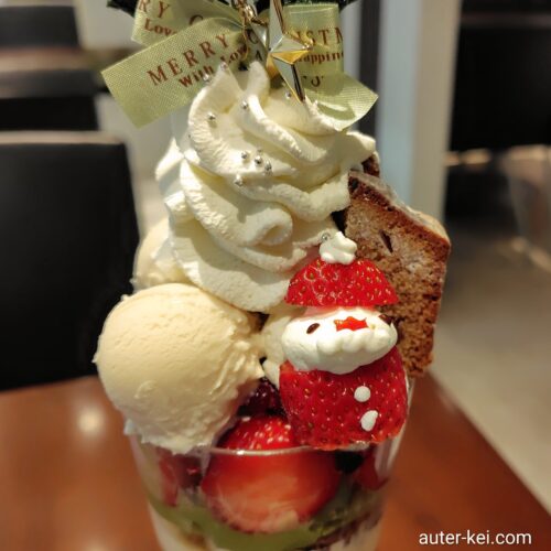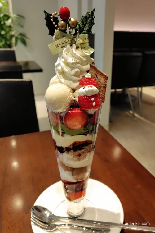 アルディのミルフィーユをイメージして構成された「クリスマスパフェ」。