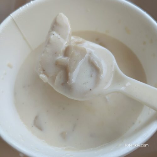 クラムチャウダーの時はクラッカーが付いていたので、それがない分、少し物足りなさも…。