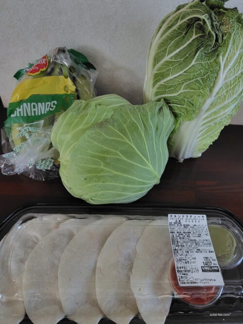 さらに、キャベツや白菜、バナナ、そして翌朝の朝食用にチキンケサディーヤも。