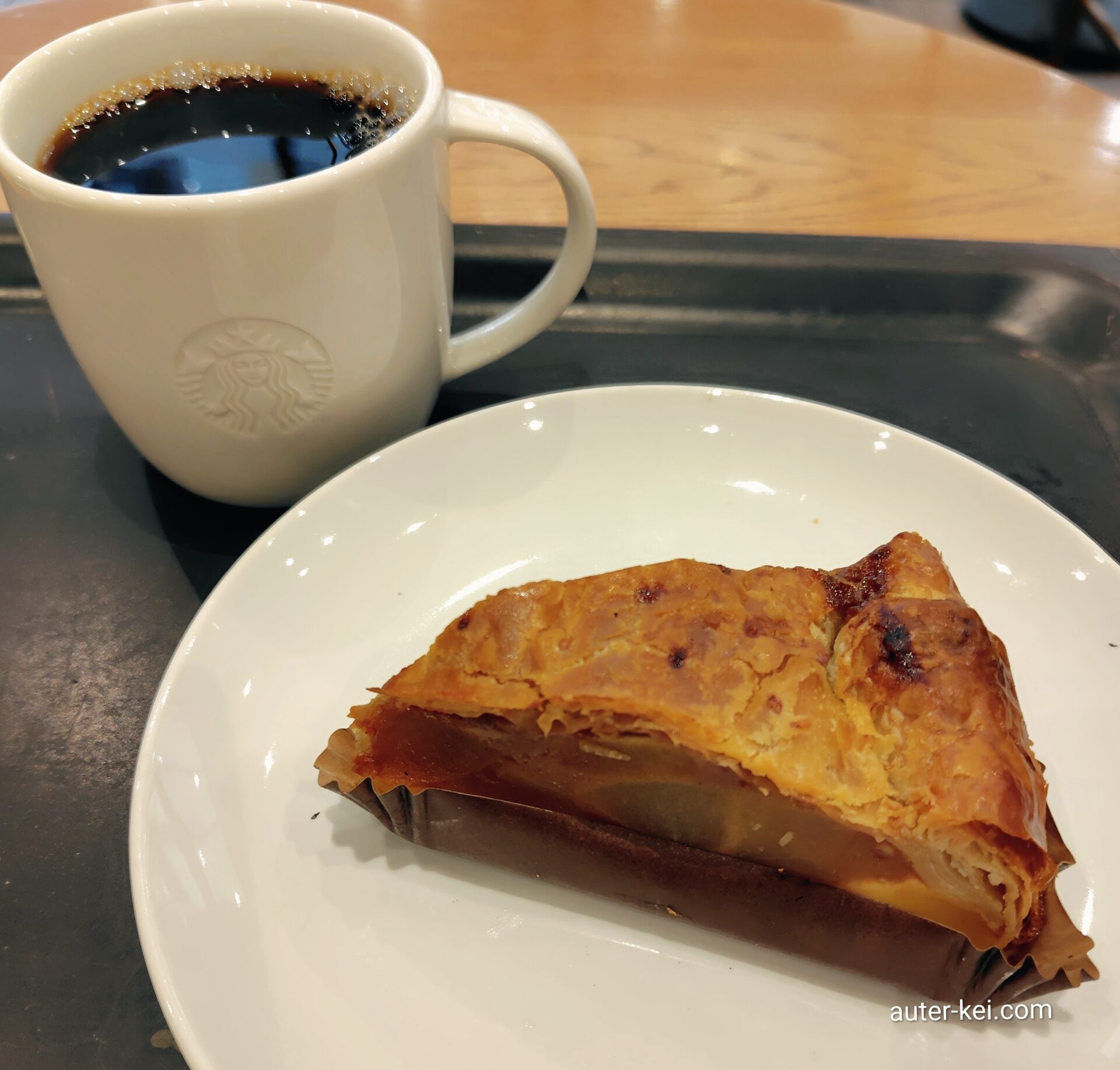 まずは「青森県産2種のりんご カスタードアップルパイ」とホットコーヒーの組み合わせ。